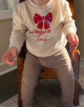 You are purchasing the personalized pullover only with the choice of cream or white color. Please ensure you have reviewed the color selection before checkout. Bottoms and accessories are not included.