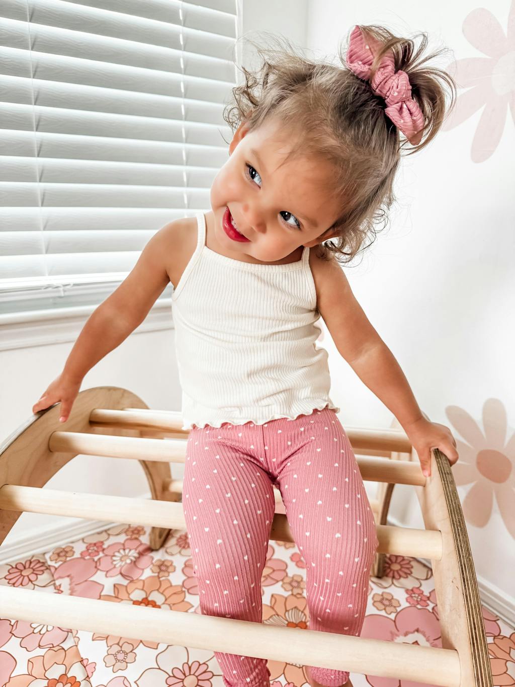 White Hearts on Dusty Rose Ribbed Leggings