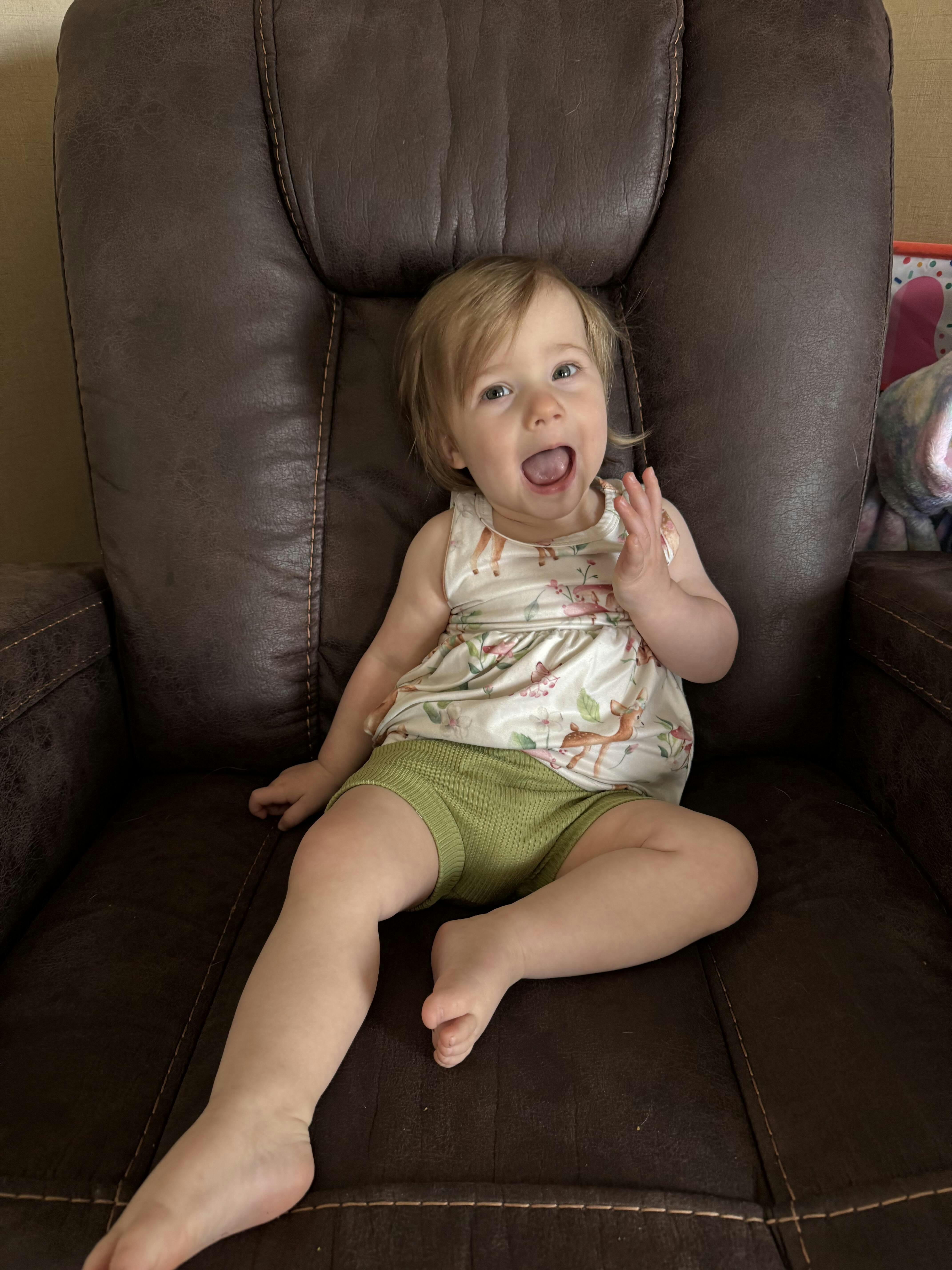 I decided to buy the next size up to have on hand, but my girl can wear it now with so much room to grow. The design of these clothes fit the ankles and arms (with lots of room to give) while also being super stretchy. She’ll probably be able to wear this romper for months to come!