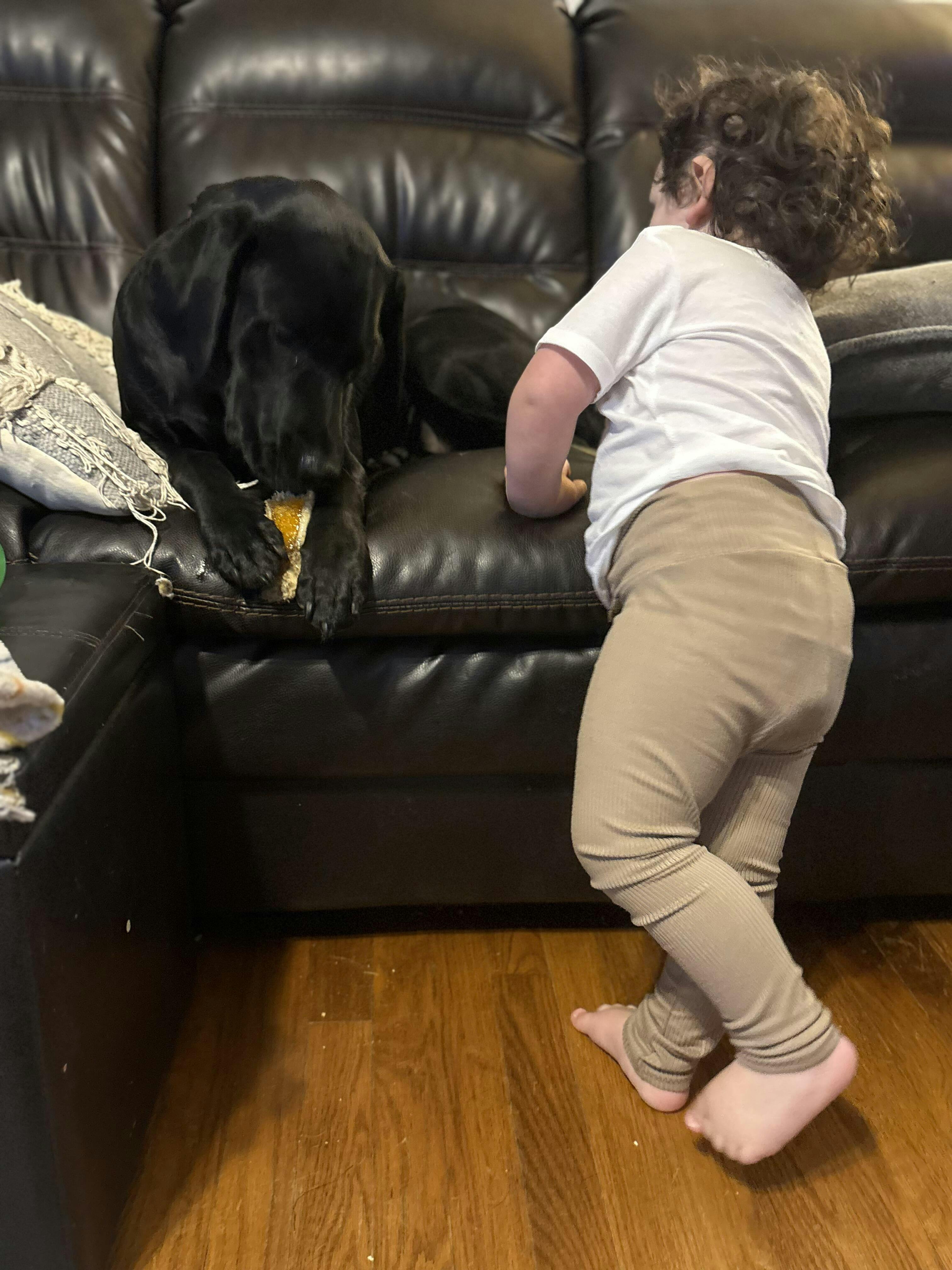 Obsessed with these leggings. I dress them down for comfort with a Tshirt, and dress it up with a nice sweater. They are perfect for my ever moving toddler