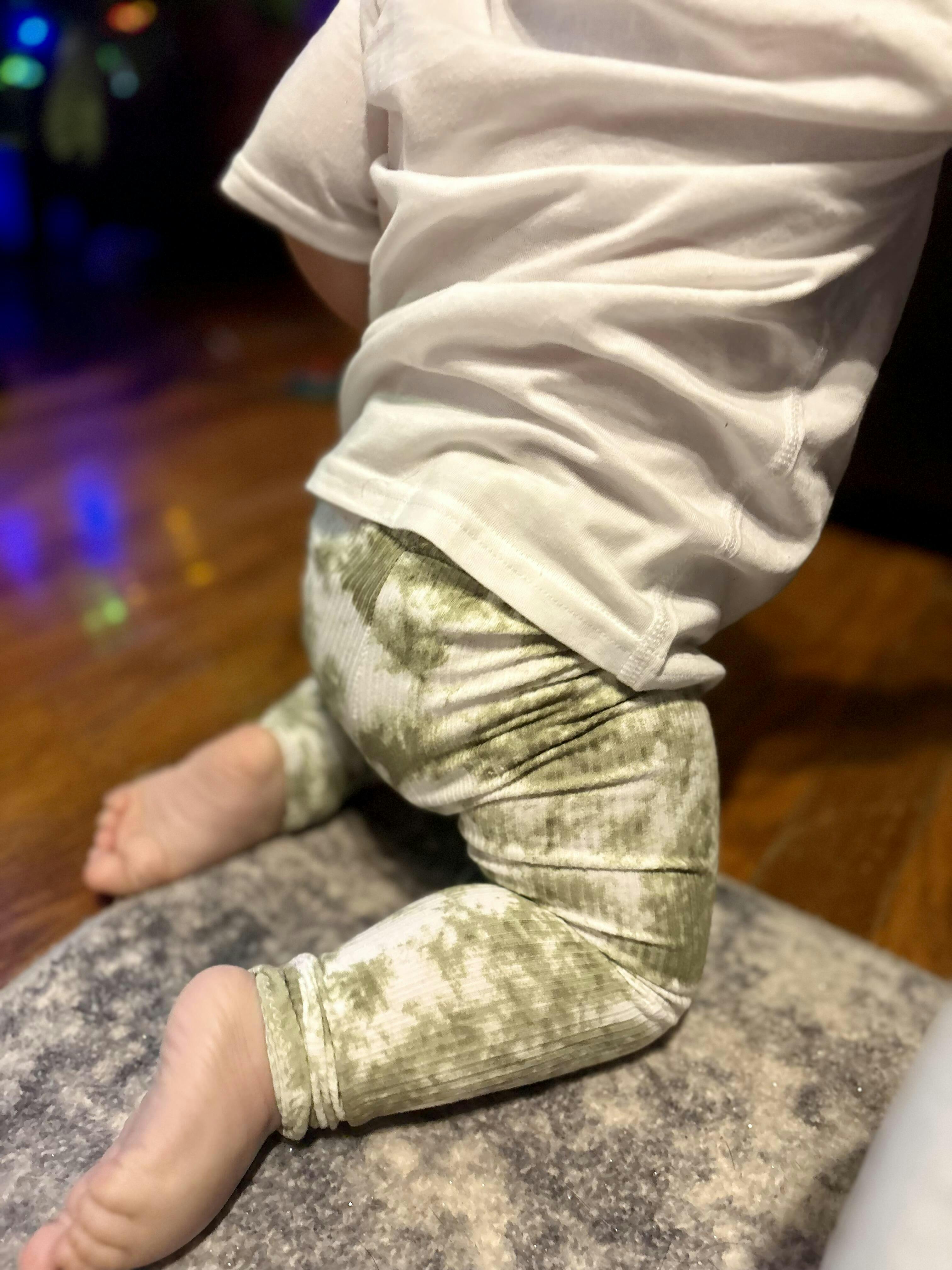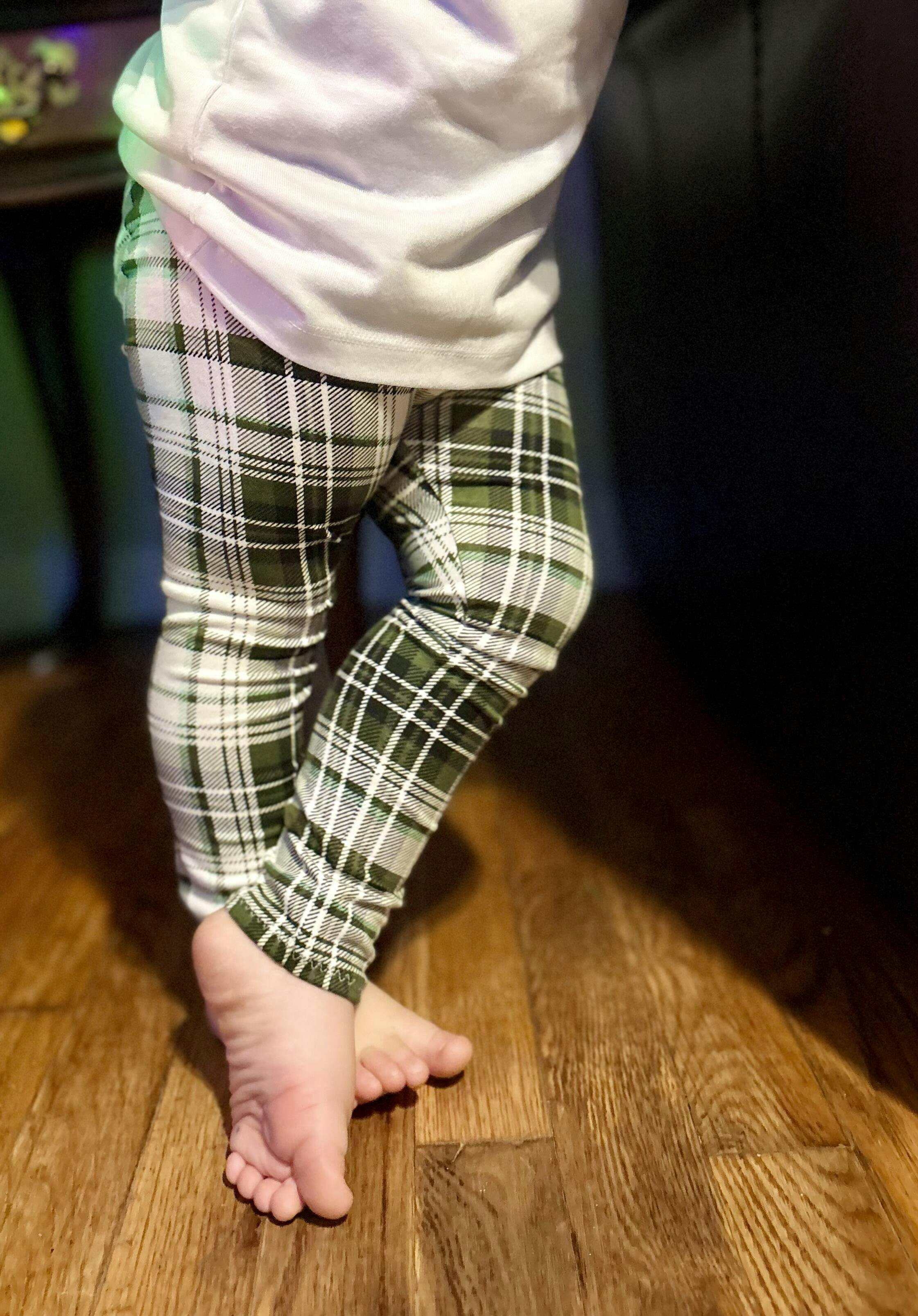 Compressed enough we don’t have to worry about it slipping off the foot but SO MUCH room to grow! I love checkered print and this fabric makes it even better. Style, comfort, and room to grow all in one.